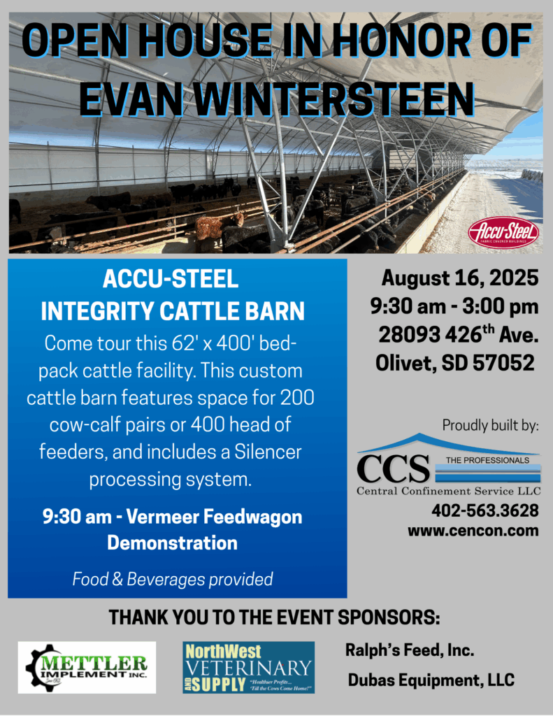 Learn about the features of the 600 Head, Bed-Pack Cattle Finishing Barn that CCS will host an Open House at on June 17, 2021 near Goodrich, ND.